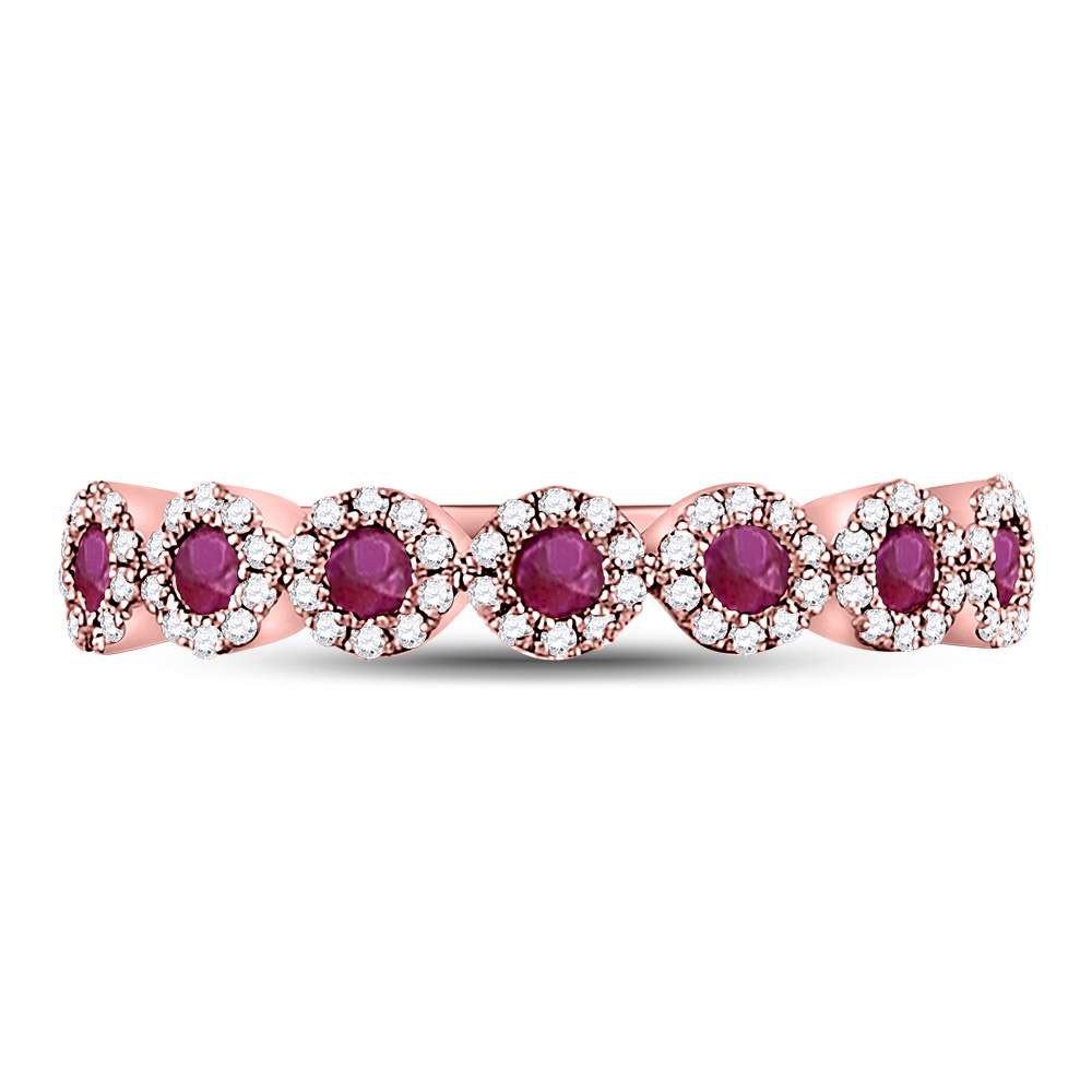 10kt Rose Gold Womens Round Ruby Halo Stackable Band Ring 1/2 Cttw