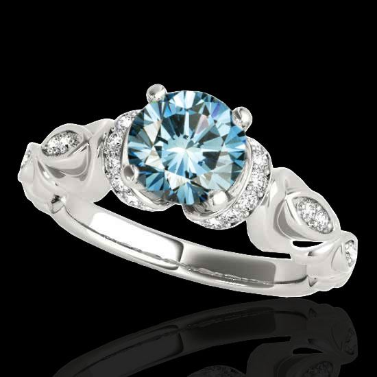 REF-161W8F -34680 ---- 1.2 CTW Si Certified Fancy Blue Diamond Solitaire Antique Ring 10K White Gold ---- Luxury Designer Brand Ring Appraised at $9,800 Certificate Number US34680 10k White gold, Ring Size is 7, Ring measuring approx. Uniform, weighing in total approx. 4.8 grams. Made in the USA and is stamped 10k, Main stone 1 carat total weight containing 1 pieces of Intense Fancy Blue color with SI quality Round shape cut Diamond , Stone #2 0.2 carat total weight containing 26 pieces of H-I color with VS/SI quality Round shape cut Diamond