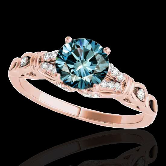 REF-156N4Y -35256 ---- 1.2 CTW Si Certified Fancy Blue Diamond Solitaire Ring 10K Rose Gold ---- Luxury Designer Brand Ring Appraised at $9,450 Certificate Number US35256 10k Rose gold, Ring Size is 7, Ring measuring approx. Uniform, weighing in total approx. 3.3 grams. Made in the USA and is stamped 10k, Main stone 1 carat total weight containing 1 pieces of Intense Fancy Blue color with SI quality Round shape cut Diamond , Stone #2 0.2 carat total weight containing 26 pieces of H-I color with VS/SI quality Round shape cut Diamond