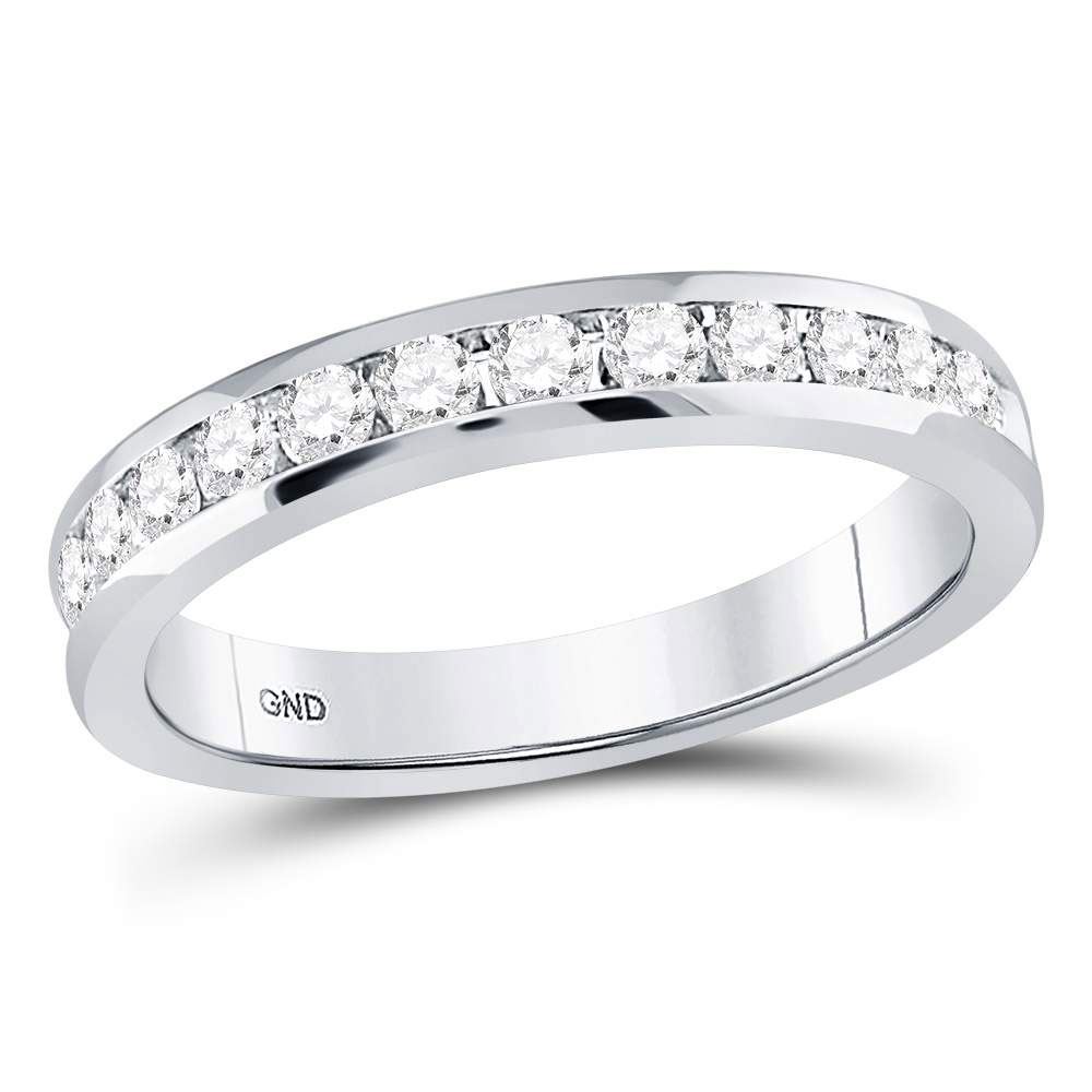 REF-54R5X - 1/2 CTW Womens Machine-Set Round Diamond Wedding Band Ring 14kt White Gold - REF-54R5X