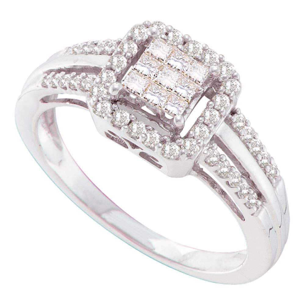 REF-58Y5N - 1/2 CTW Womens Princess Diamond Square Cluster Ring 14kt White Gold - REF-58Y5N