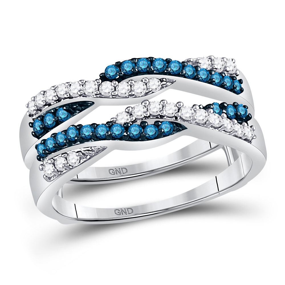REF-47N6A - 1/2 CTW Womens Round Blue Color Enhanced Diamond Band Ring 10kt White Gold - REF-47N6A