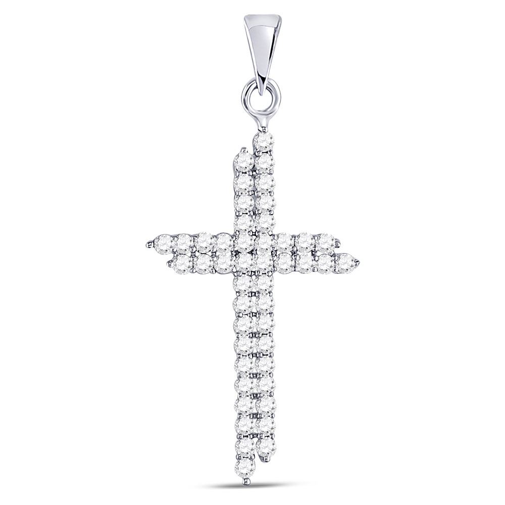 REF-25R9X - 1/2 CTW Womens Round Diamond Asymmetric Cross Pendant 10kt White Gold - REF-25R9X
