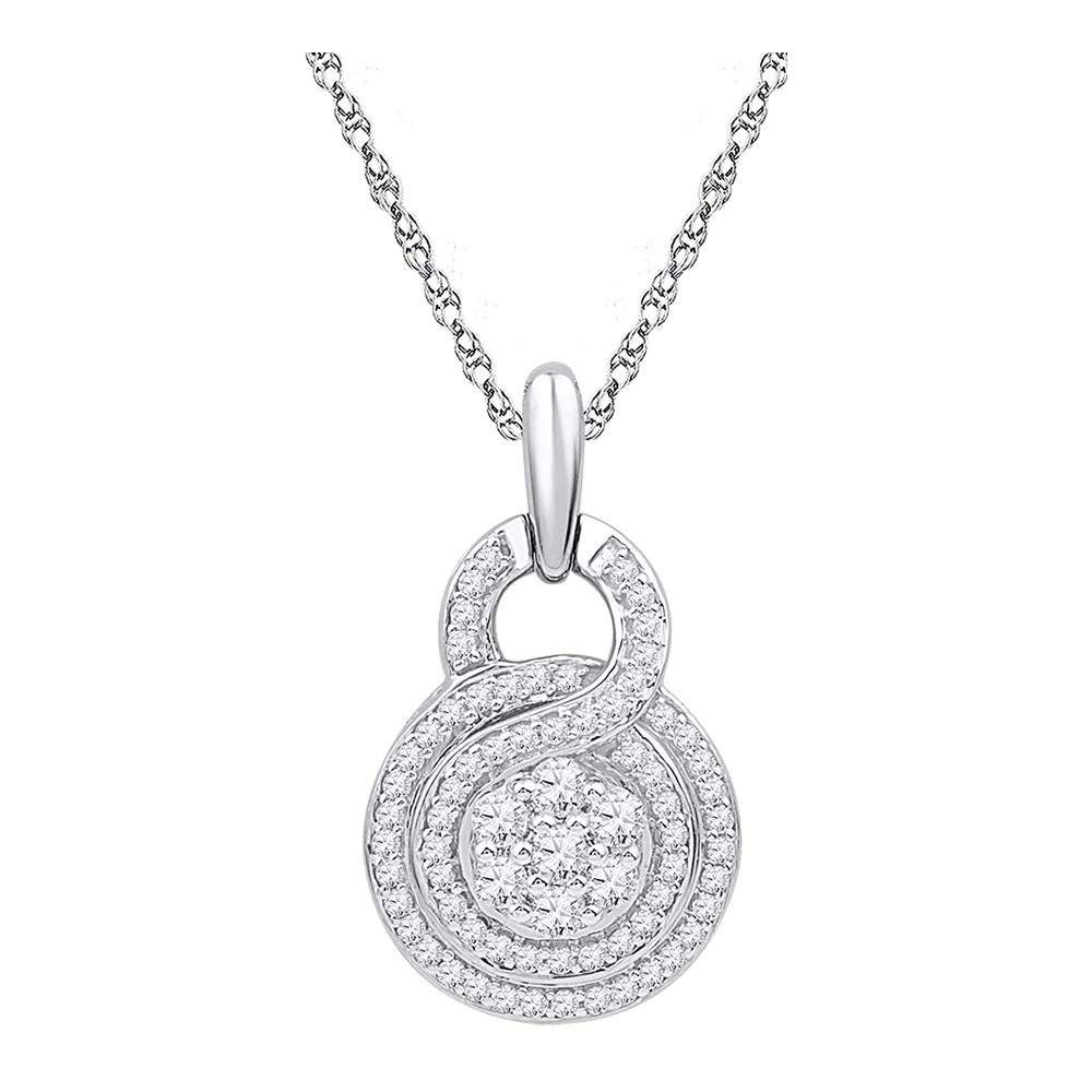 REF-34F3W - 1/2 CTW Womens Round Diamond Circle Flower Cluster Pendant 10kt White Gold - REF-34F3W