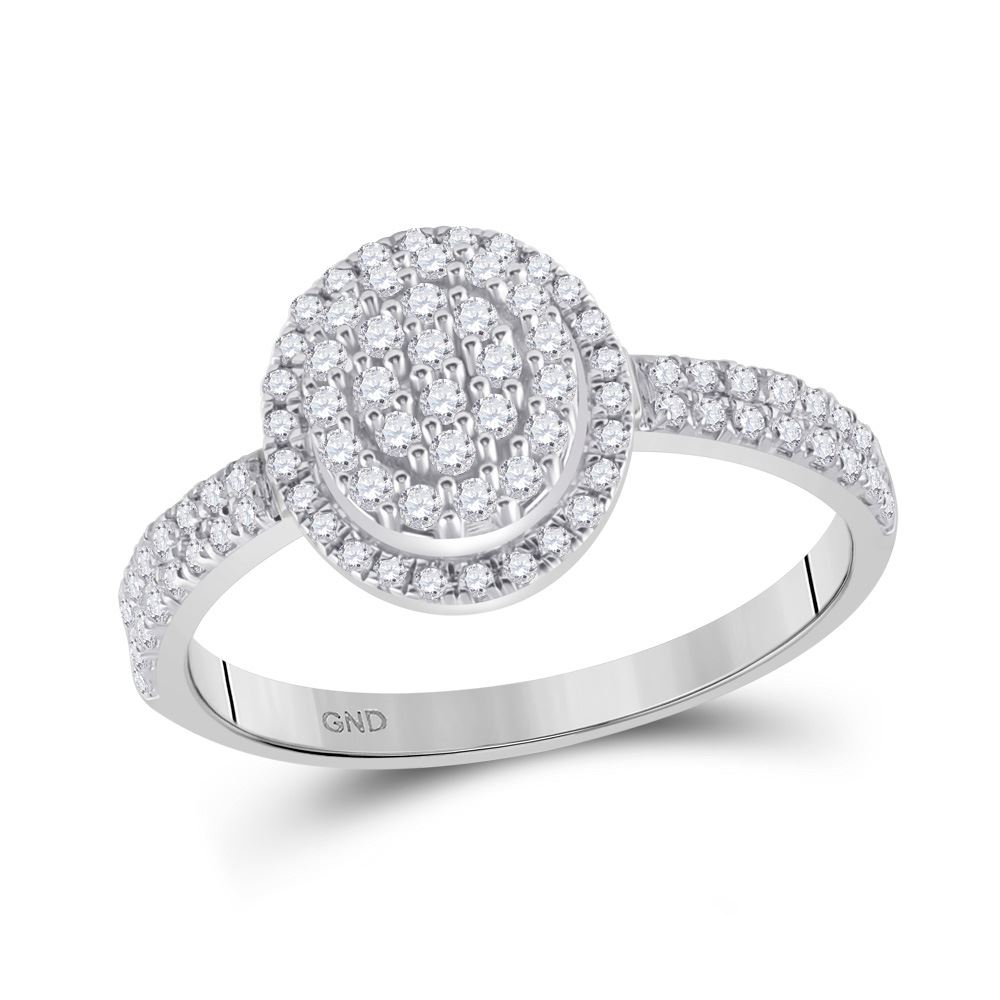 REF-32Y6N - 1/2 CTW Womens Round Diamond Cluster Ring 10kt White Gold - REF-32Y6N