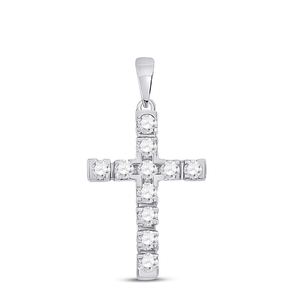 REF-34T3V - 1/2 CTW Womens Round Diamond Cross Pendant 14kt White Gold - REF-34T3V