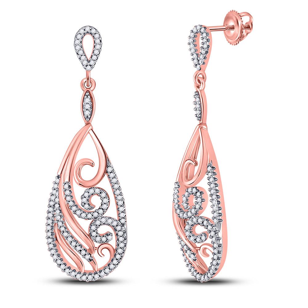 REF-40R8X - 1/2 CTW Womens Round Diamond Curl Teardrop Dangle Earrings 10kt Rose Gold - REF-40R8X