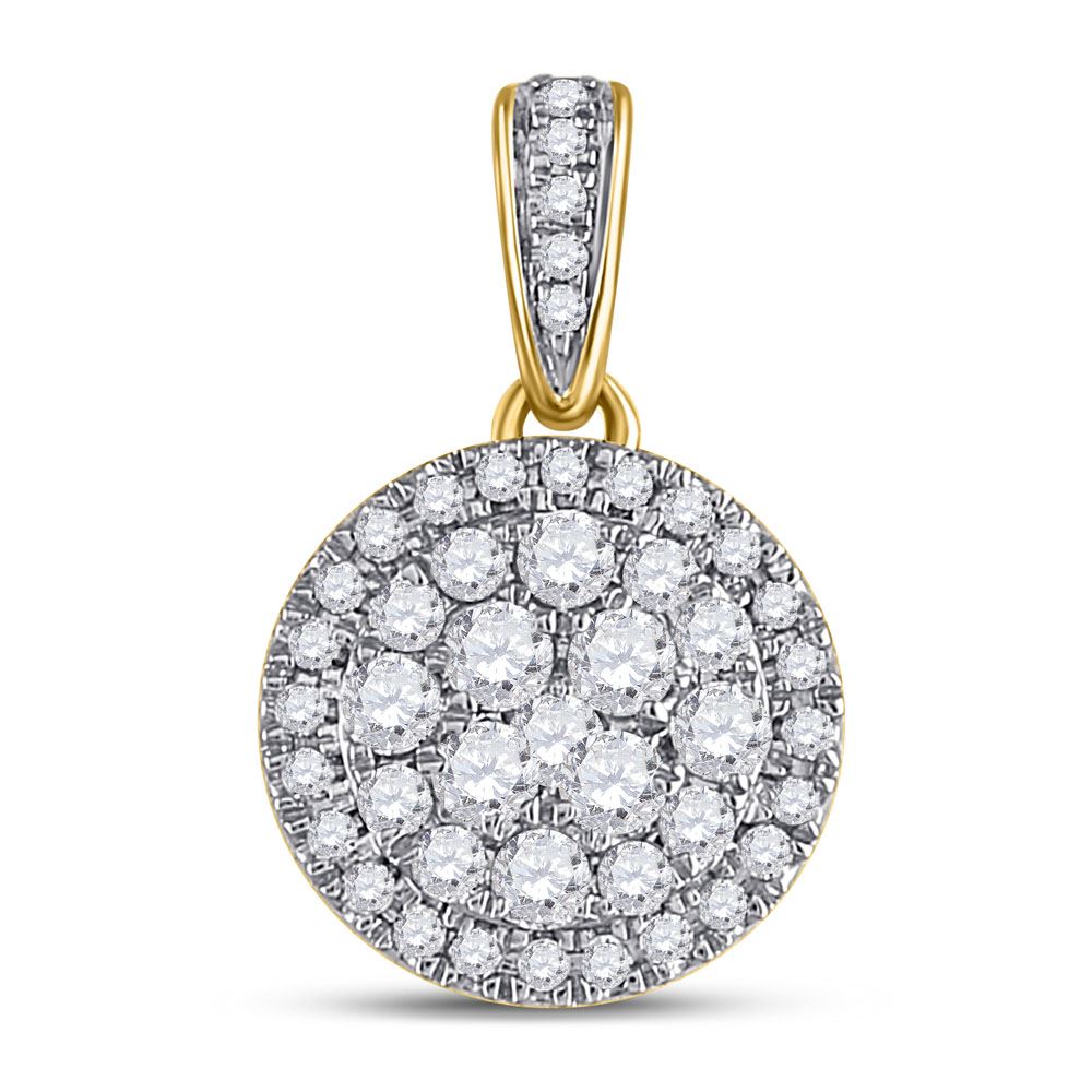 REF-43H6R - 1/2 CTW Womens Round Diamond Halo Cluster Pendant 14kt Yellow Gold - REF-43H6R