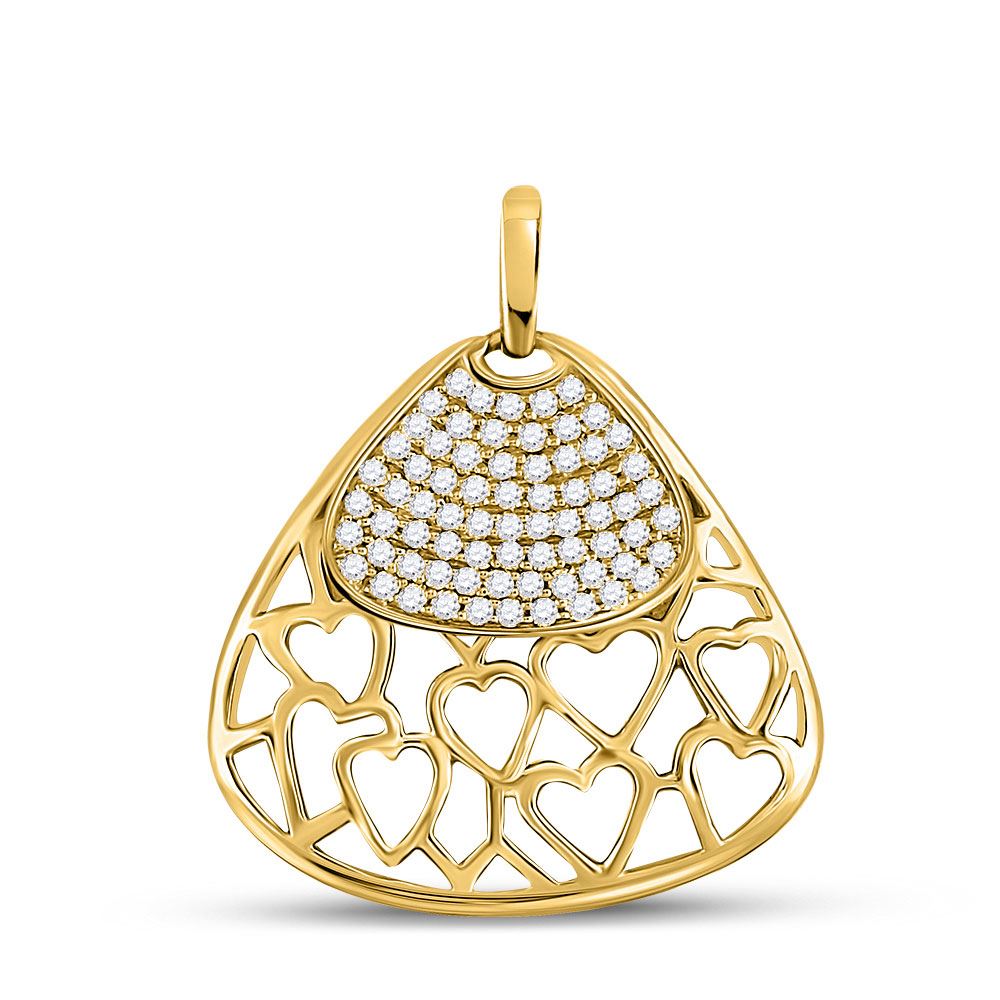 REF-47N6A - 1/2 CTW Womens Round Diamond Heart Triangle Pendant 10kt Yellow Gold - REF-47N6A