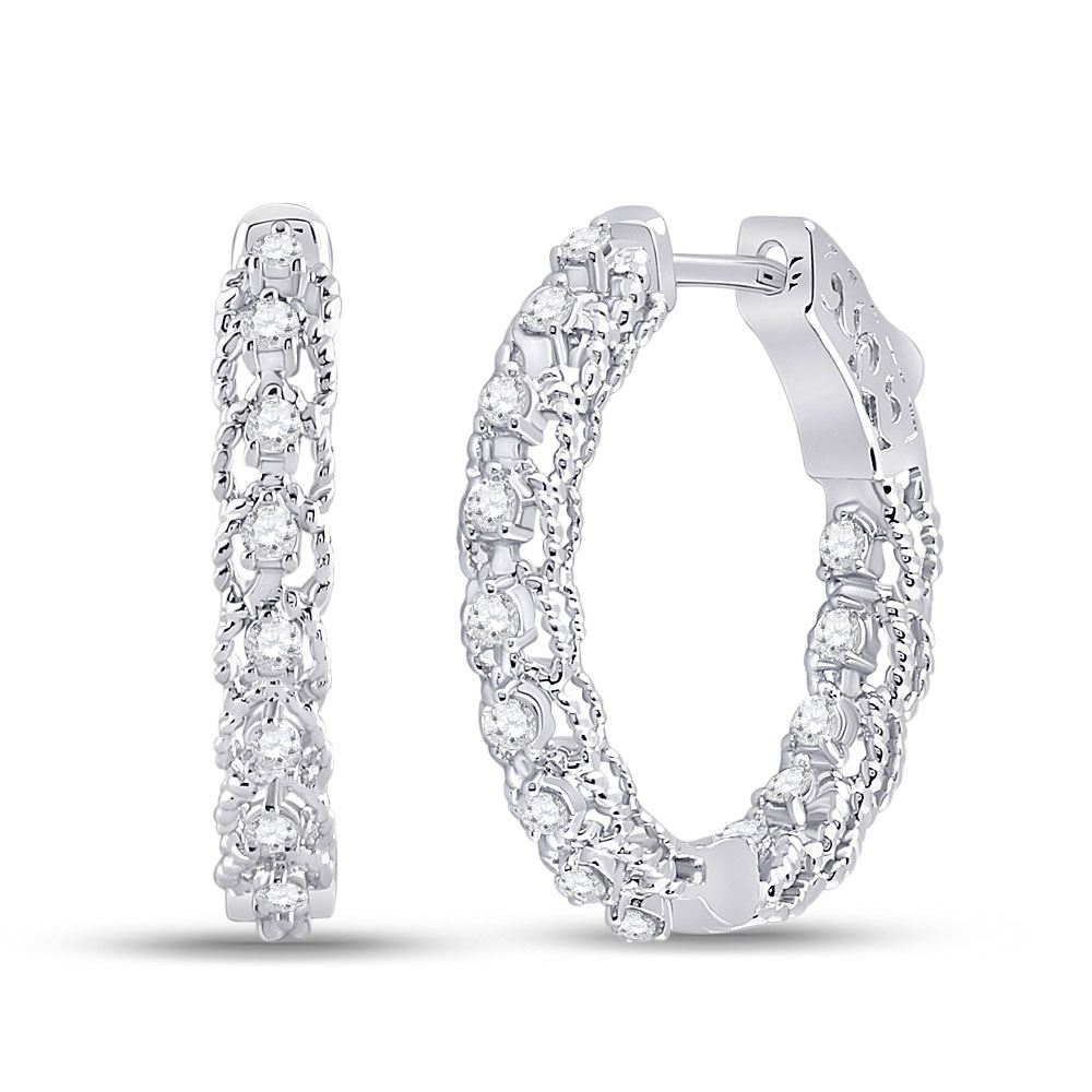 REF-61H4R - 1/2 CTW Womens Round Diamond Hoop Earrings 14kt White Gold - REF-61H4R