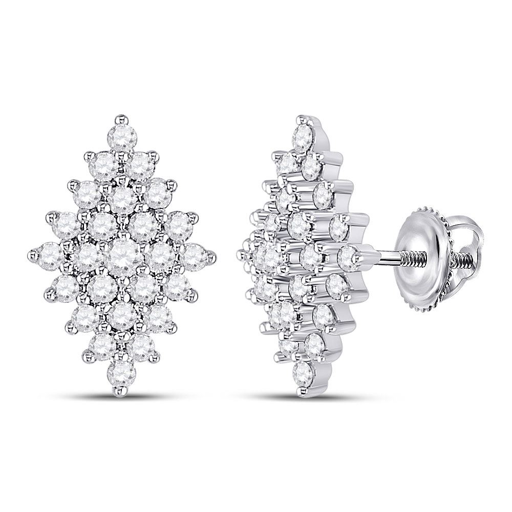 REF-40R8X - 1/2 CTW Womens Round Diamond Marquise-shape Cluster Earrings 14kt White Gold - REF-40R8X