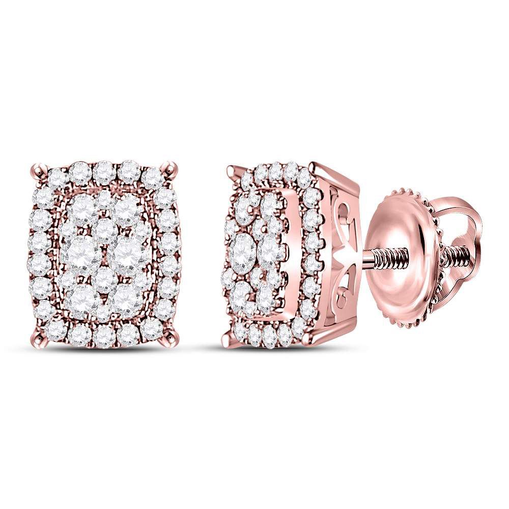 REF-47V6Y - 1/2 CTW Womens Round Diamond Rectangular Cluster Earrings 14kt Rose Gold - REF-47V6Y