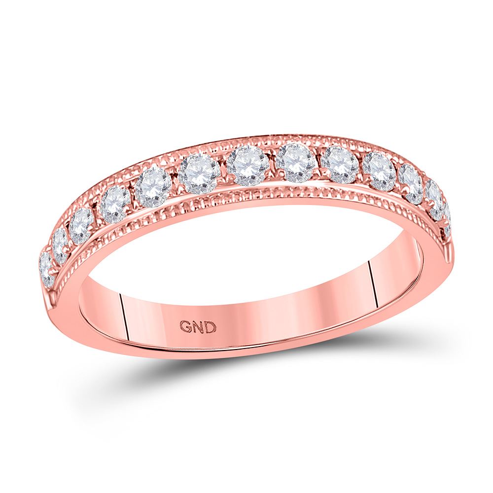 REF-54H5R - 1/2 CTW Womens Round Diamond Wedding Band Ring 14kt Rose Gold - REF-54H5R