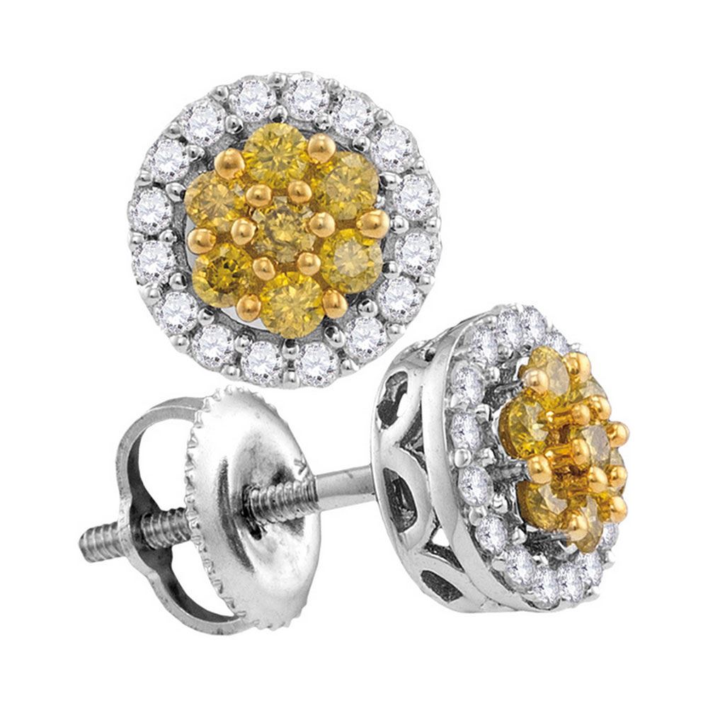 REF-30R5X - 1/2 CTW Womens Round Yellow Color Enhanced Diamond Cluster Earrings 10kt White Gold - REF-30R5X
