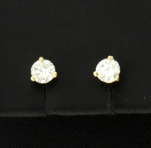 These studs are approx. 0.48 carat total. Brilliant cut diamond weight. Clarity I-1, color "I-J". The stud are martini, 3 prong style that fit close to ear lobe! 0.5g