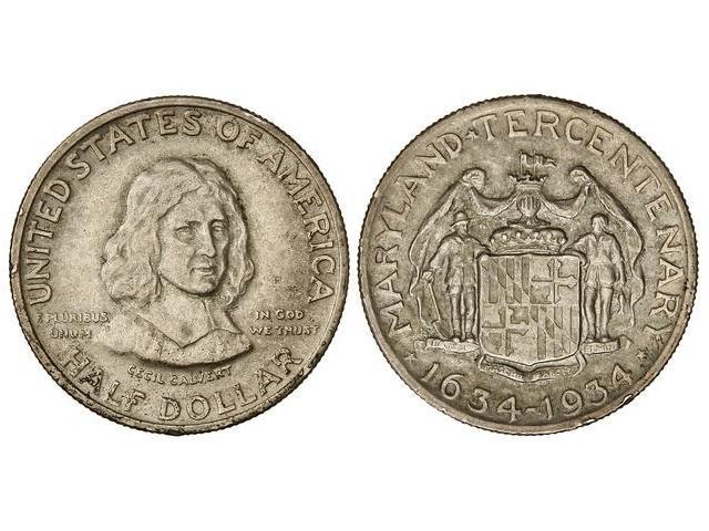 1/2 Dólar. 1934. AR. III Centenario Maryland: Cecil Calvert. (Golpecitos en canto). ESCASA. KM-166. EBC-.