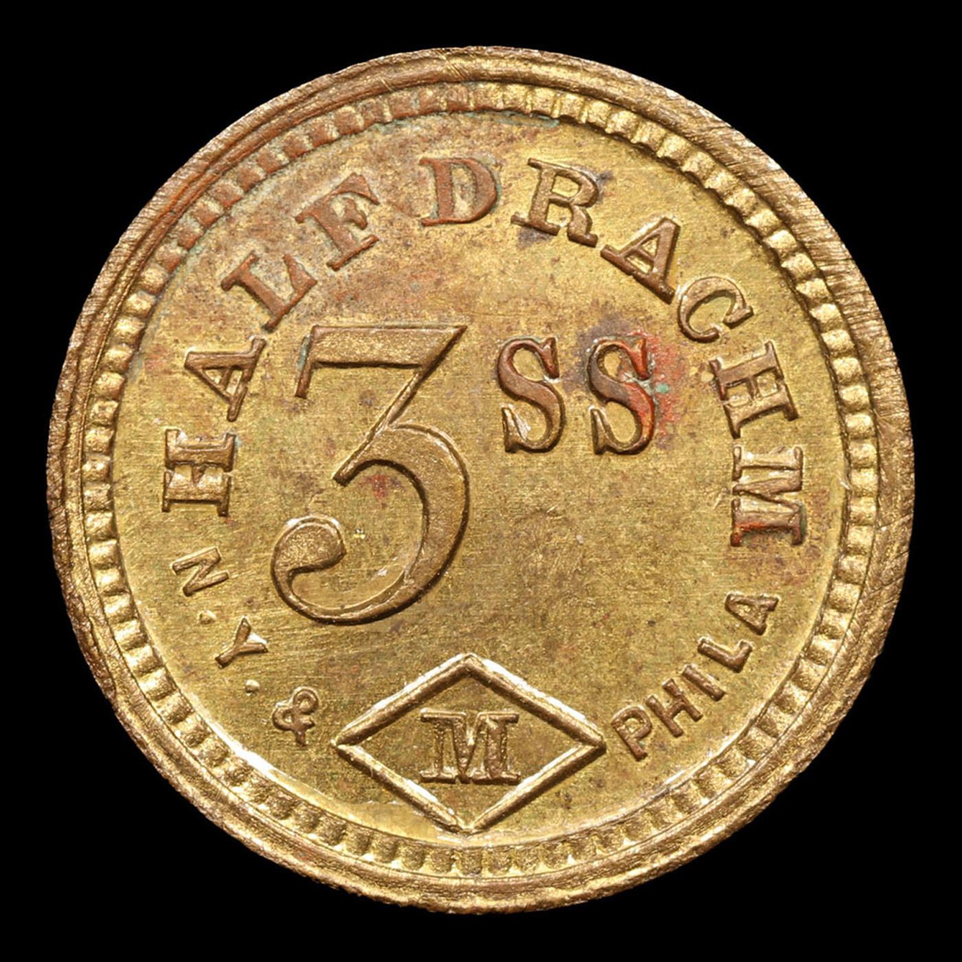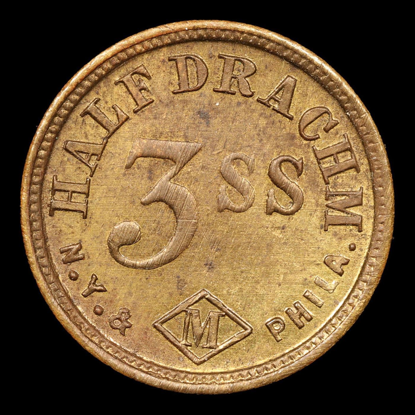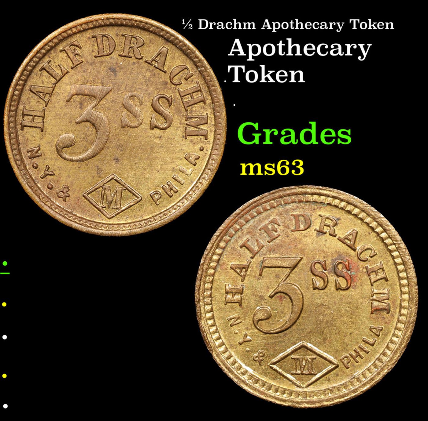 1/2 Drachm Apothecary Token Grades Select Unc. Nowadays in America we call them pharmacists. But when these neat tokens were in widespread use (1840-1960), they were called apothecaries -- people who formulated drugs. Apothecaries would use them in various sizes:20 grains = 1 scruple = 1.296 grams3 scruples = 1 drachm (dram) = 3.888 grams8 drachms = 1 troy ounce = 31.1 gramsAnd the weights would have neat symbols on them known easily by apothecaries, but mysteries to the rest of us (they come from ancient Rome!).