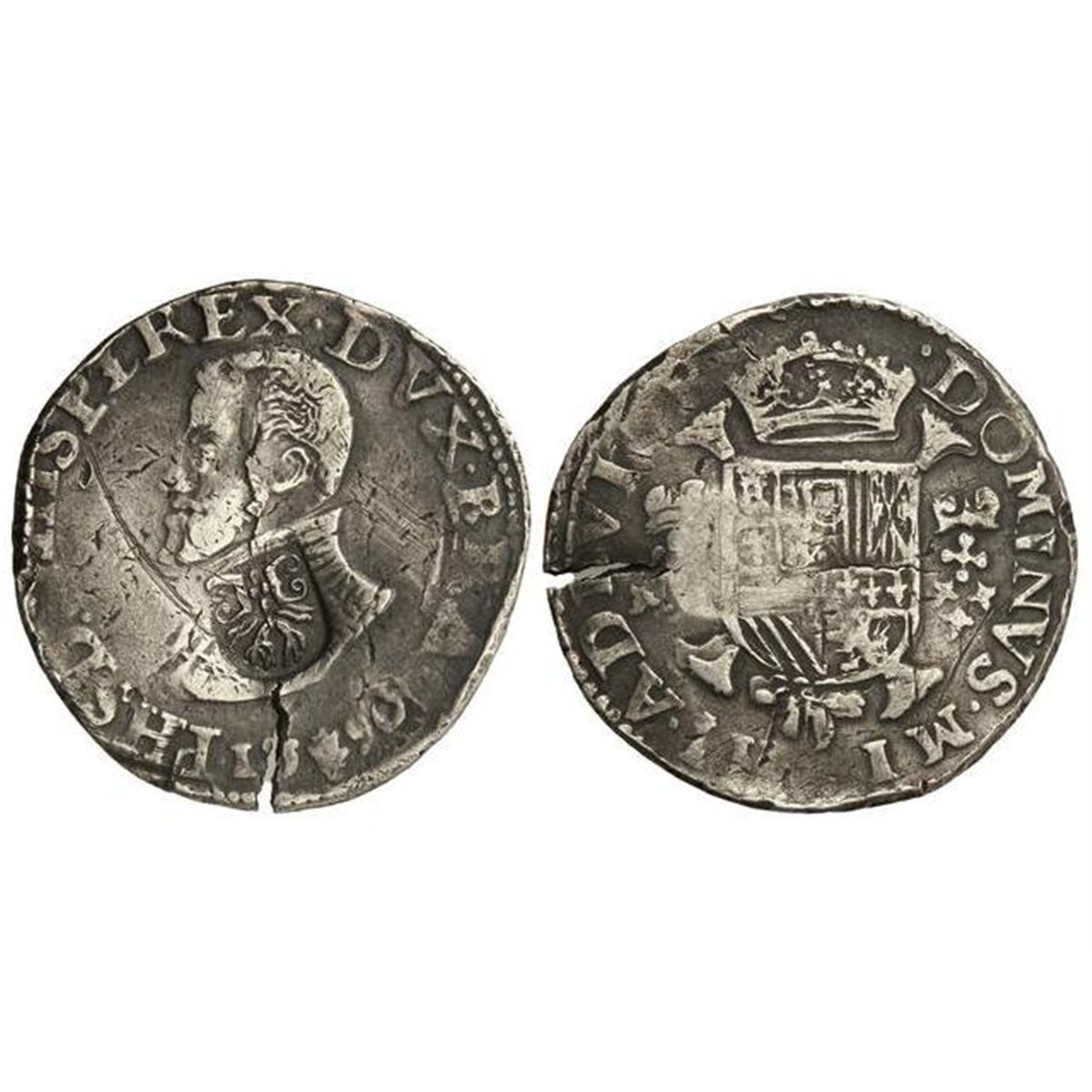 1/2 Escudo. 1590. AMBERES. Anv.: Contramarca: toisón de oro. AR. (Rayas. Grieta). Vti-1043. MBC-.