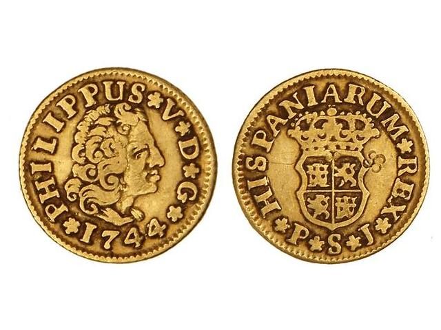1/2 Escudo. 1744/3. SEVILLA. P.J. Pequeña contramarca flor de 4 pétalos en reverso. Cal-585. MBC-.