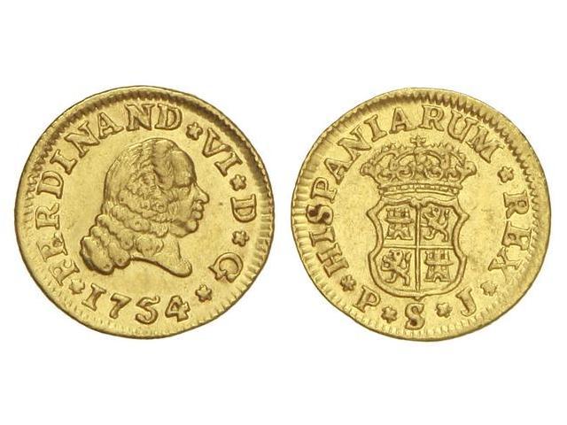 1/2 Escudo. 1754. SEVILLA. P.J. Restos de brillo original. (Golpecitos). Cal-267. EBC-.