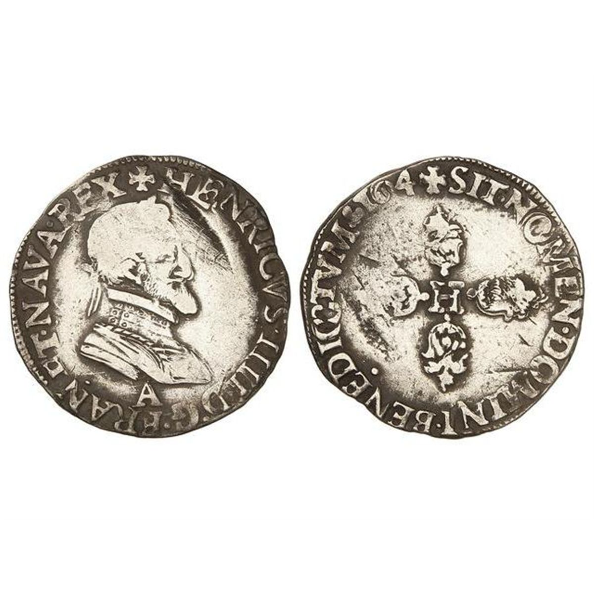 1/2 Franco. - 1604-A. - ENRIQUE IV. - PARÍS. - AR. (Golpes). BC+. - -