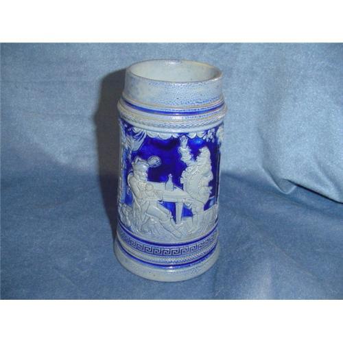 VERY NICE 1/2 L. BLUE & GRAY GERMAN TANKARD. MARKED ON BASE (PICTURE 4). NO FLAWS. (1 LB, 6.3 OZ)