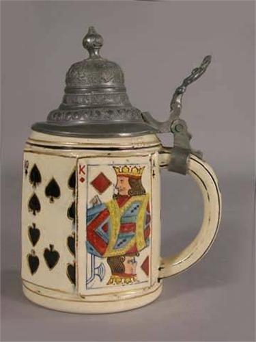1/2 Liter German Stein - 6 sided playing card design, manufacturer #1427 - 1920's, no chips or cracks.