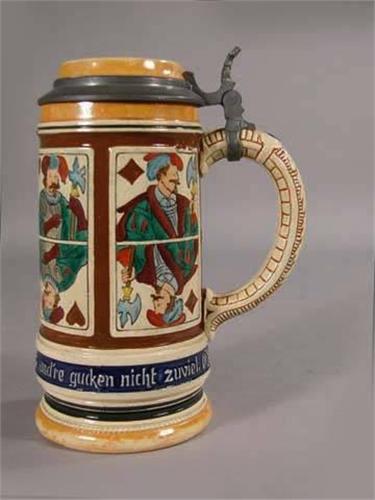 1/2 liter stein with playing card design, manufacturer #1265 - 1910, no chips or cracks.