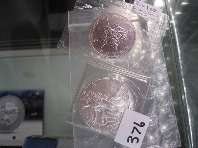 1 2 ONE OUNCE (99.9%) SILVER COINS USA AND CANADIAN MAPLE LEAF COIN.