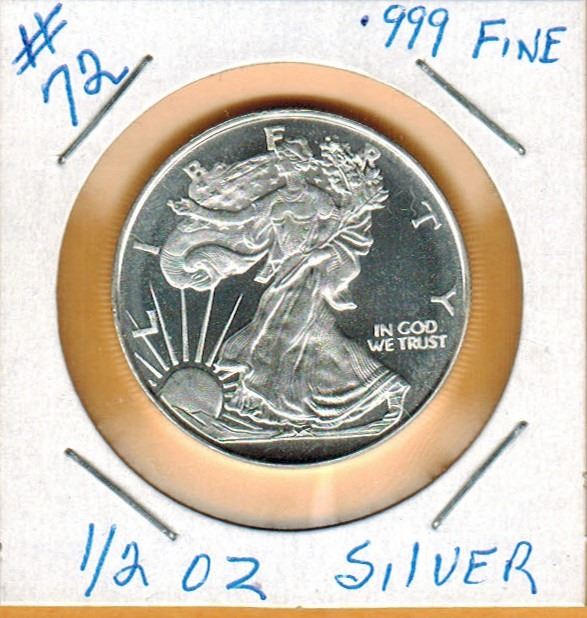 1/2 OUNCE SILVER - 999 FINE - US WALKING LIBERTY HALF DOLLAR DESIGN