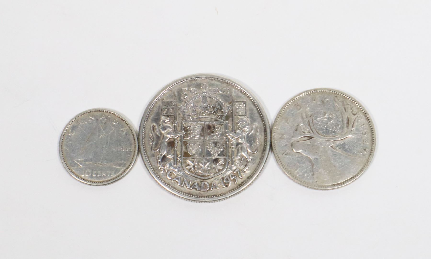 1957 50 CENT, 1947 25 CENT, AND 1959 10 CENT