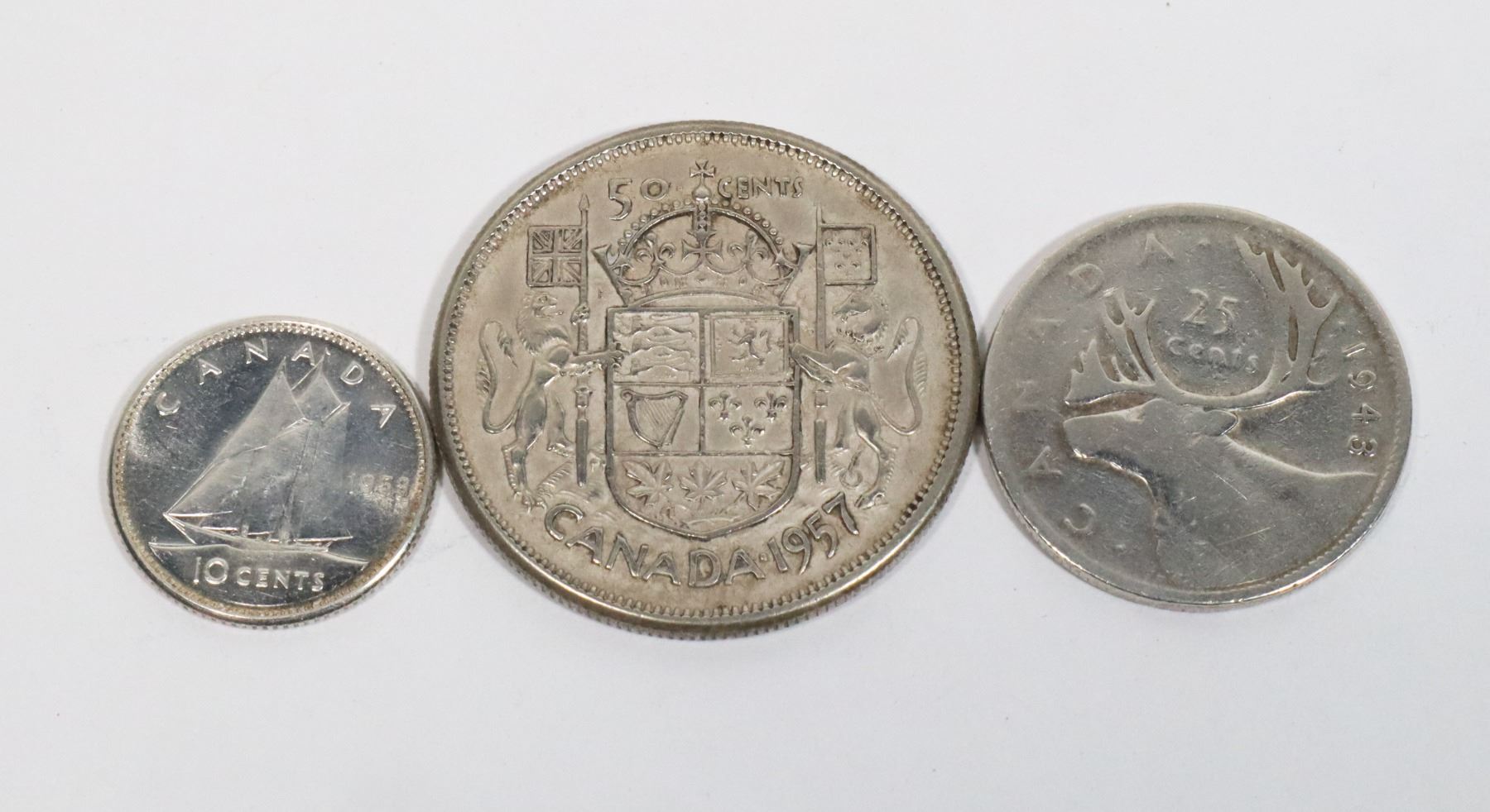 1957 50 CENT, 1943 25 CENT, AND 1959 10 CENT