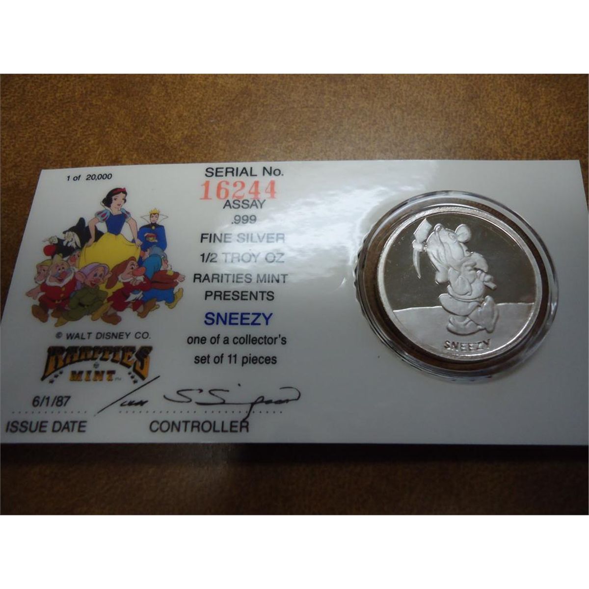 1/2 OZ. DISNEY .999 SILVER ROUND "SNEEZY" PROOF
