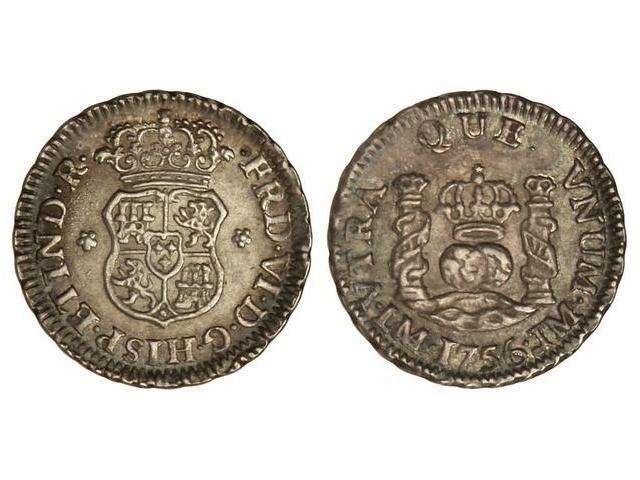 1/2 Real. - 1756. - LIMA. - J.M. - Columnario. Bonita pátina. Cal-642. MBC+/EBC-. - -