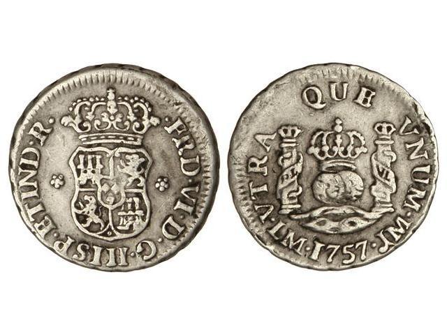 1/2 Real. 1757. LIMA. J.M. Columnario. Cal-643. MBC+/MBC.