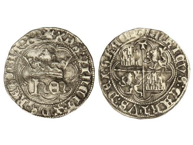 1/2 Real. - ENRIQUE IV. - TOLEDO. - Anv.: ¶XPS:VINCIT:XPS:REGNAT:XF. hEn coronadas dentro de gráfila lobular. Rev.: ¶ENRICVS:CARTVS:DEI:GRACI. Castillos y leones cuartelados dentro de gráfila lobular. T en la parte superior del eje vertical. 1,67 grs. (Grieta en cospel). RARÍSIMA. AB-No cat. MBC. - -
