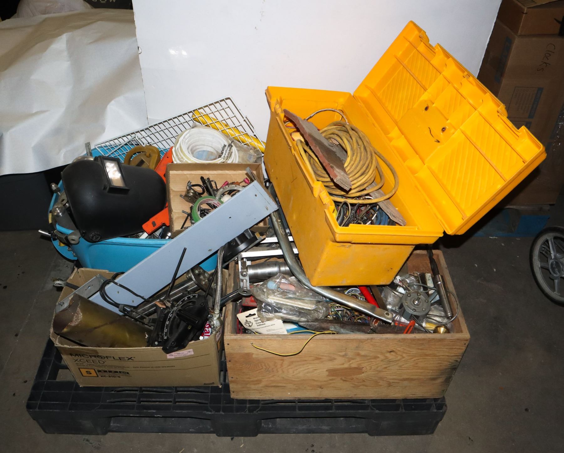 1/2 SIZE PALLET OF GARAGE CLEAROUT ITEMS, MOSTLY