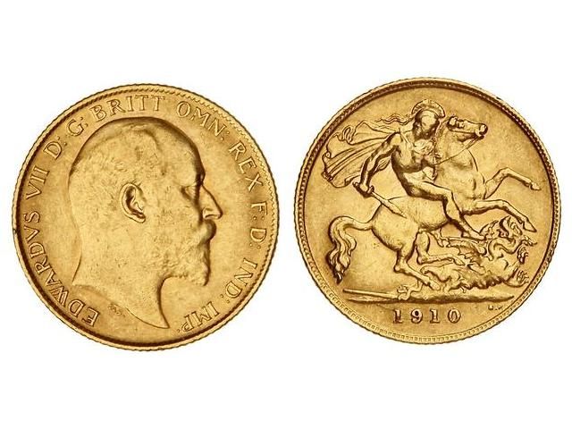 1/2 Soberano. 1910. EDUARDO VII. AU. KM-804. MBC+/EBC.