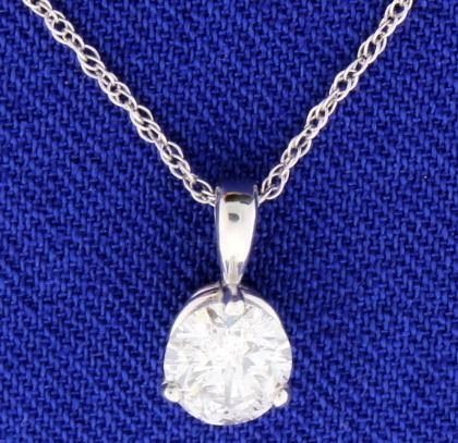 Gorgeous 1/2 carat brilliant cut diamond solitaire set in 14k white gold Martini setting! The diamond offers SI3/I1 clarity and H-I color. The new chain is also 14k white gold. Beautiful classic look for every woman! 1.2g