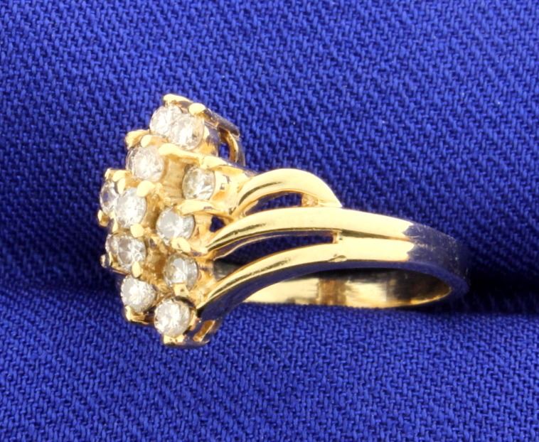 Lovely 14k yellow gold ring with a 1/2 carat of sparkling diamonds. The 13 brilliant cut diamonds are SI clarity and H-I-J color. Size 5 3.7g