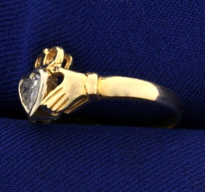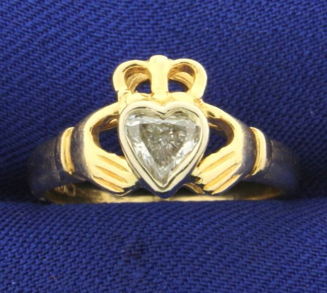 In 14K Yellow Gold. 1/2 ct high quality diamond in heart shape, SI clarity/I color. Size 6.5 3.5g