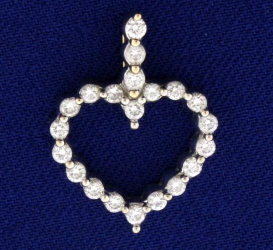 In 18k White Gold. The white gold pendant contains 20 high quality brilliant cut diamonds, 1/2ct TW. The diamonds are SI clarity/G color with lots of brilliance and sparkle. The cut on these diamonds is excellent. 3.1g