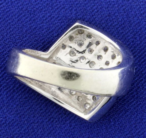 In 14K white gold, this ring contains forty two .01 to .02 ct round diamonds. Size 7 1/4 7.3g