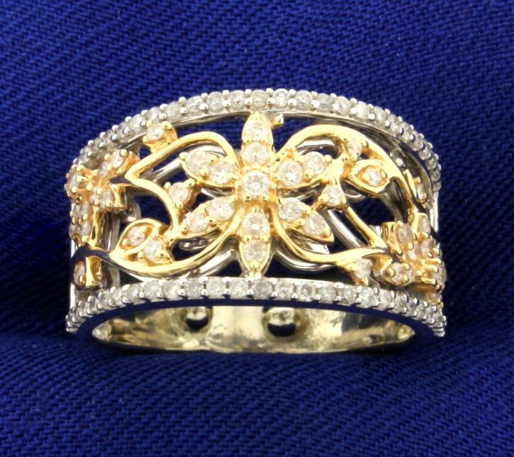1/2 ct TW Diamond Flower Design Ring in 14K White, Yellow, and Rose Gold