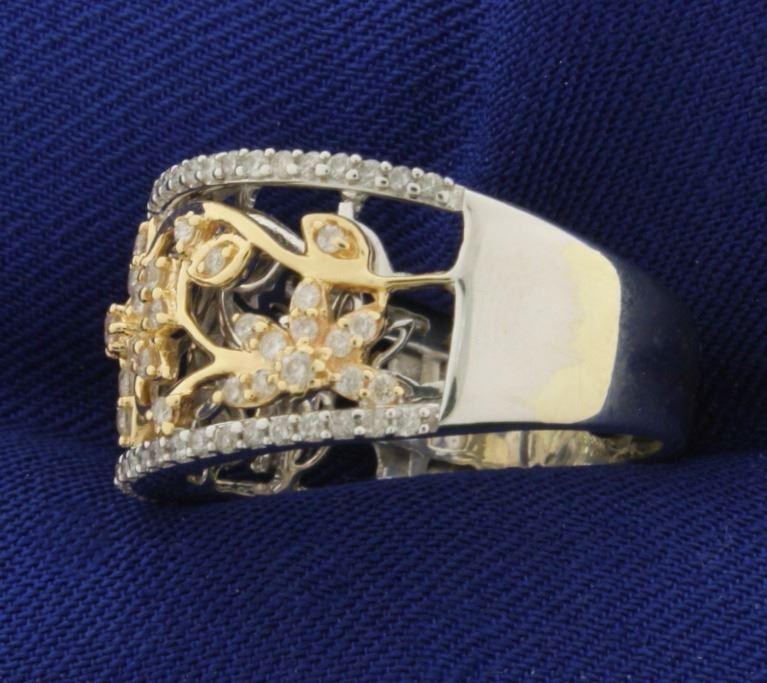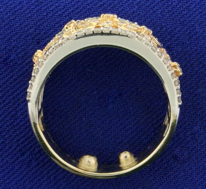 In 14K White, Yellow, and Rose Gold. Contains 1/2ct TW of high quality Diamonds, I1 clarity/I color. With sizing balls inside shank for stability. Size 7 1/2. 6.9g
