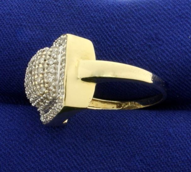 In 14k yellow and white gold. Contains 1/2 ct TW of high quality diamonds, SI clarity/H color. Size 8. 5.8g.