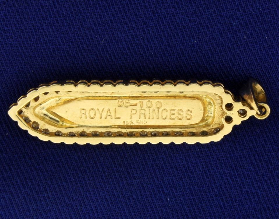 In 14k yellow gold. Containing three .03ct and thirty five .015ct high quality diamonds, SI clarity/G color. 1 3/4" long with bale. 6.0g.