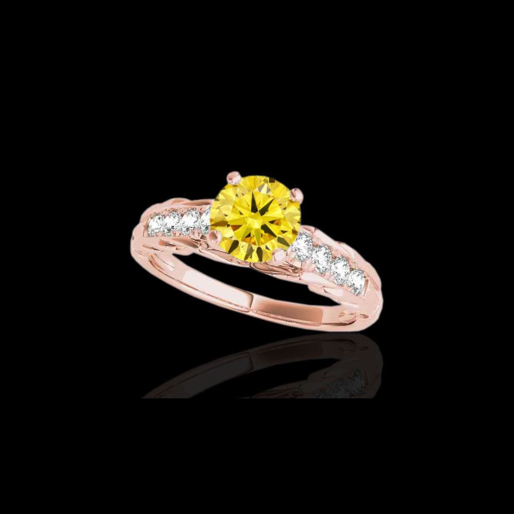 1.2 ctw Certified SI/I Fancy Intense Yellow Diamond Ring 10K Rose Gold