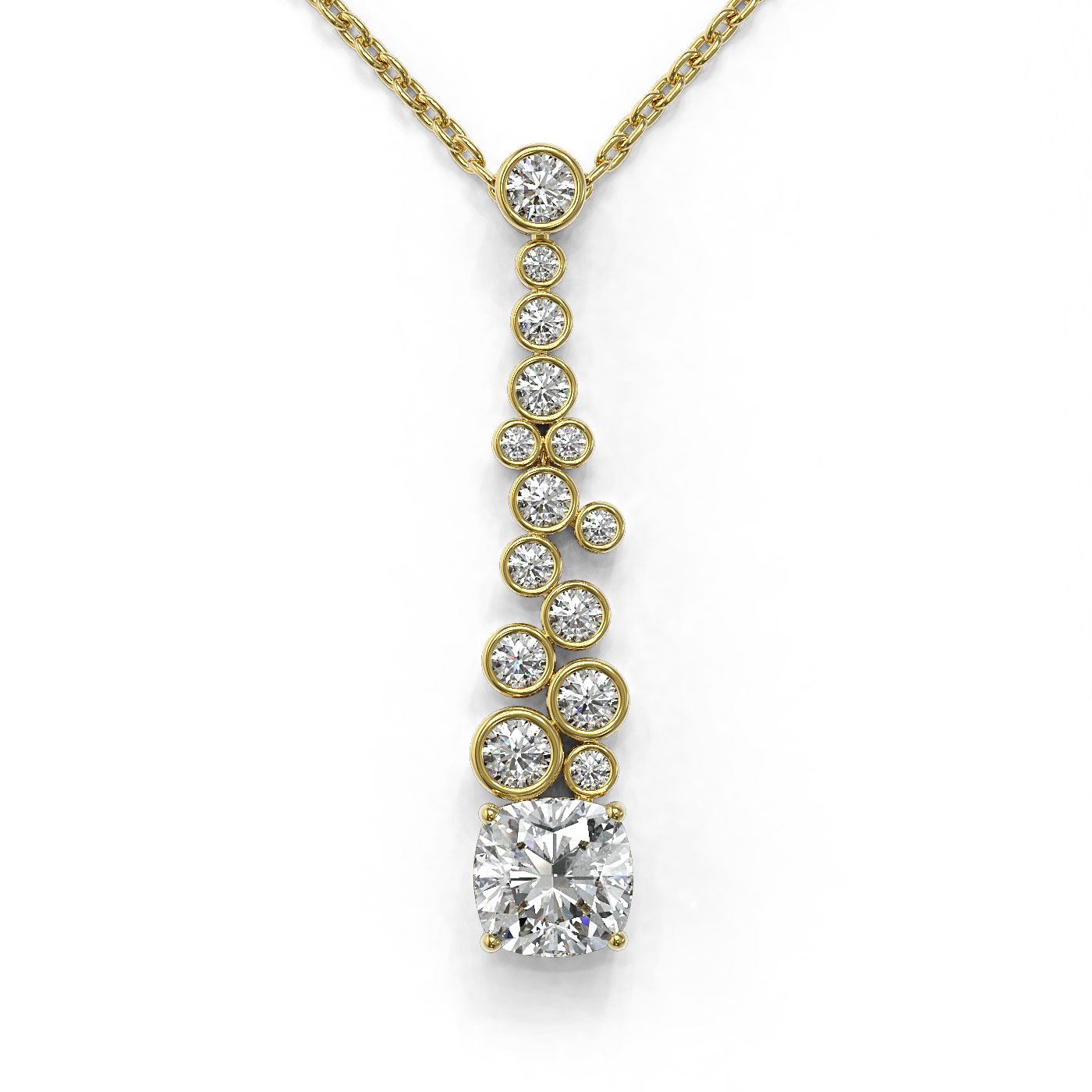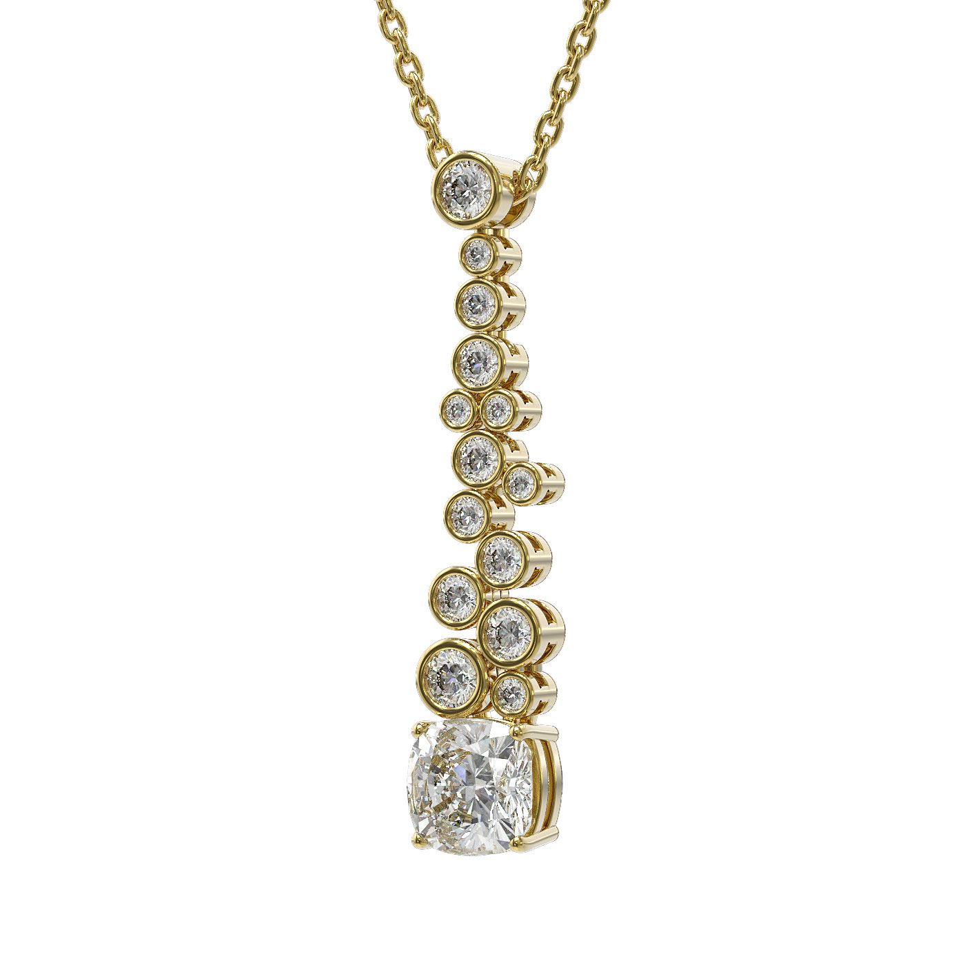 REF-181N8F - SKU: 48068 ---- 1.2 ctw Cushion Cut Diamond Designer Necklace 18K Yellow Gold