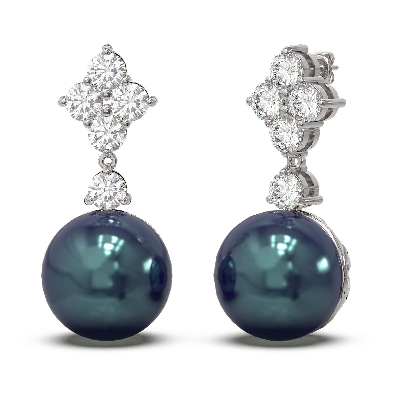 REF-131W8H - SKU: 55634 ---- 1.2 ctw Diamond & Pearl Earrings 18K White Gold